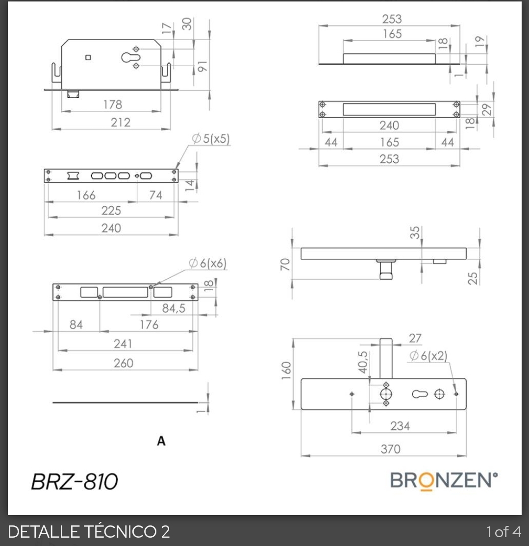 - Instalación: Tipo sobrepuesta, adecuada para puertas de aberturas de aluminio y madera.