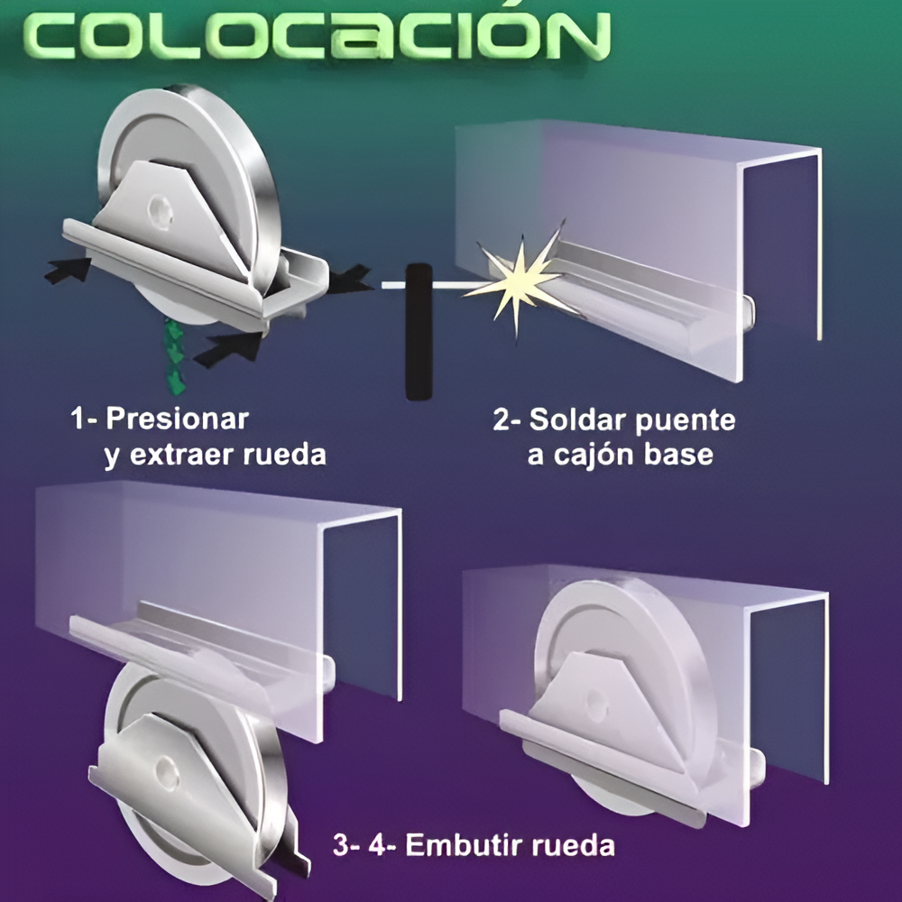 * SISTEMA QUIT Y PON, PARA UN SIMPLE ARMADO O DESARMADO A FUTURO. ( RUEDA CON PUENTE A SOLDAR Y CASCO )
